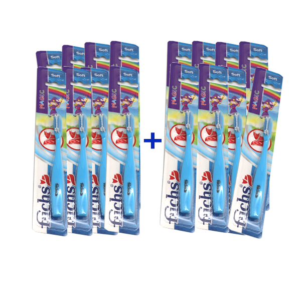 فرشة أطفال ماجك ناعمة يد الفرشاة متوفرة بألوان جذابة لتلائم اختيار الطفل شعيرات ذات نهايات دائرية لتنظيف الاسنان دون خدش طبقة المينا